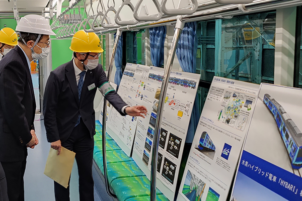 【令和4年4月8日】 斉藤大臣がJR東日本の水素ハイブリッド車両(HYBARI)を視察