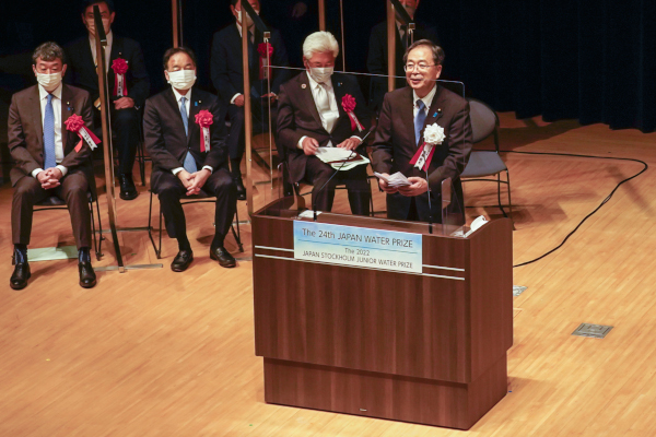 斉藤大臣は、秋篠宮皇嗣殿下の御臨席のもと開催された「第24回日本水大賞・2022日本ストックホルム青少年水大賞」表彰式に出席しました。