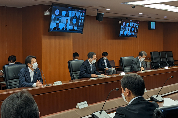 会議で発言する斉藤大臣