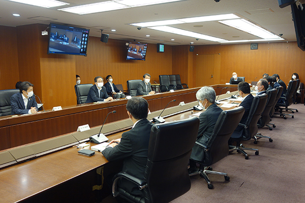 会議で発言する斉藤大臣
