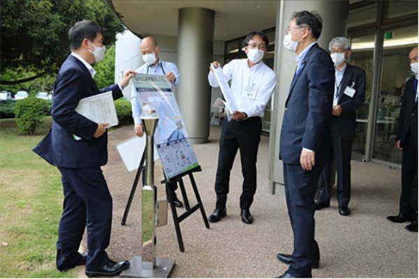 研究開発に係る説明を受ける斉藤大臣