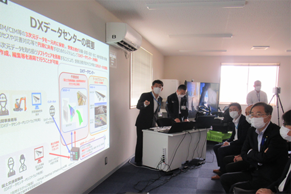 3次元データの活用に係る技術の説明を受ける斉藤大臣