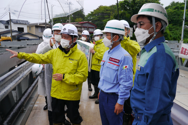 木村政務官は、8月9日(火)に、令和3年8月の大雨等により被災した国道279号小赤川橋をむつ市長、風間浦村長と視察しました。