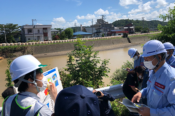 下内川が氾濫した大館市の被災箇所を視察する石井副大臣