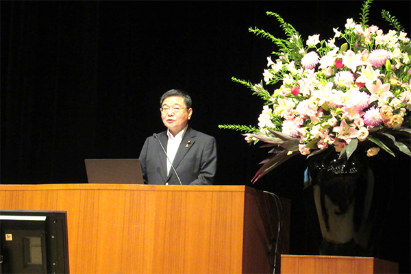 「共生社会バリアフリーシンポジウムin伊勢」で挨拶をする古川政務官