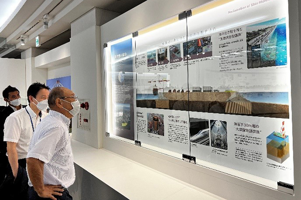 横浜みなと博物館にて、埋立事業について説明を受ける豊田副大臣