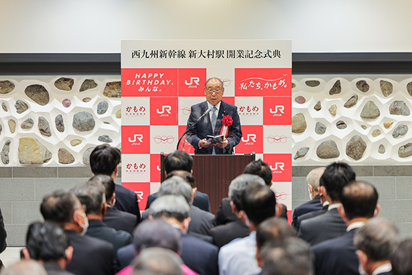 祝辞の中で、「大村市は、長崎空港、長崎自動車道、本日開業する西九州新幹線の三大高速交通拠点を有する交通アクセスに優れた街となり、長崎県内の観光、ビジネスの交通拠点としての発展が期待されます。また、西九州新幹線により、長崎市までの所要時間が最速で15分となるなど通勤・通学の利便性が向上することで、更なる定住の促進も期待されます」と述べました。