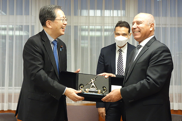 9月29日(木)、斉藤大臣は、エジプト・アラブ共和国のカメル・アブデルハディ・ファラグ・エルワジール運輸大臣による表敬訪問を受けました。