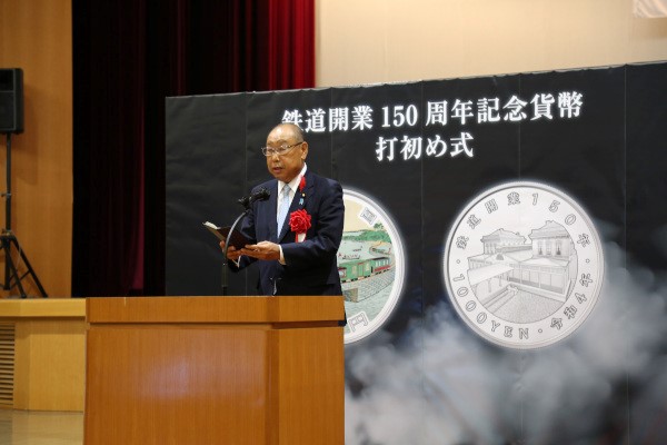 令和4年10月4日(火)、豊田国土交通副大臣は、大阪市の(独)造幣局で開催された「鉄道開業150周年記念貨幣打初め式」に出席しました。