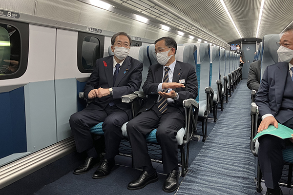 令和4年10月8日(土)、斉藤大臣は、山梨リニア実験線において超電導リニアに試乗し、超電導リニアの開発状況を視察しました。