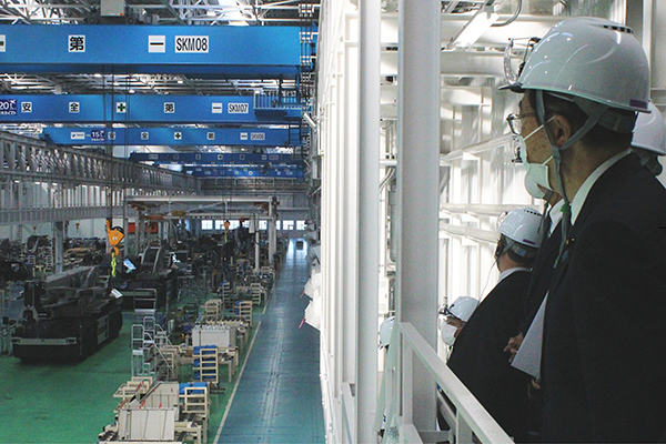 (株)タダノの工場を視察する斉藤大臣