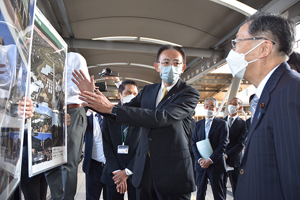 JR高槻駅北駅前広場の整備状況を確認する斉藤大臣