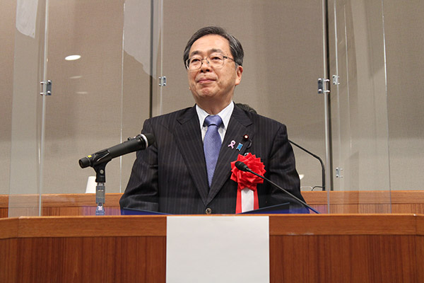 来賓として挨拶をした斉藤大臣は、「「いのち」はもちろん、住民の「くらし」も守る土砂災害対策を推進することが極めて重要であり、自然災害に屈しない国土づくりを着実に進めるとともに、流域治水に基づいた事前防災を強力に推進して参ります」などと述べました。