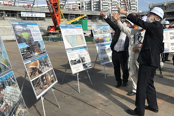 広島市中央公園の工事現場にて市から説明を受ける斉藤大臣