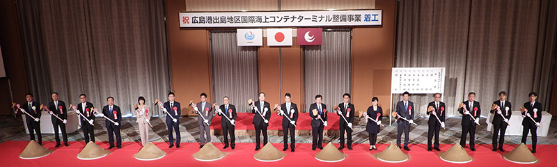 11月20日(日)、斉藤大臣は「広島港出島地区国際海上コンテナターミナル整備事業着工式典」に出席し、「本事業は、広島港において船舶の大型化への対応や新たな航路の就航を可能とするものである。広島港のサプライチェーンが強化され、利用者の競争力向上を期待している。」と挨拶しました。