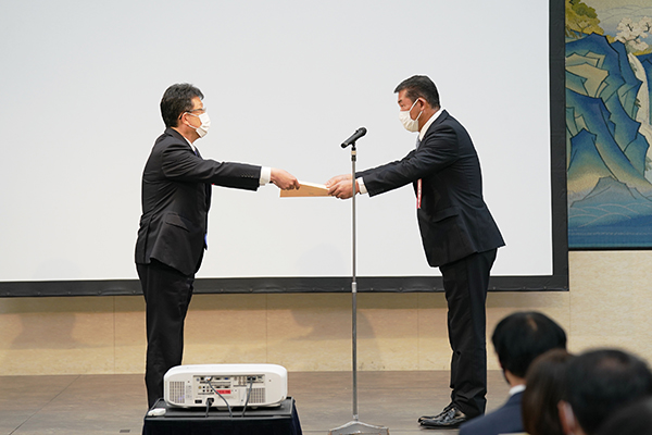 同表彰式において、「緑の都市賞」、「緑の環境プラン大賞」、「屋上・壁面緑化技術コンクール」の表彰が行われ、国土交通大臣賞等を受賞された団体に対し、石井副大臣から表彰状を授与しました。