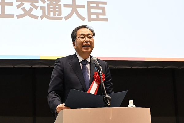 祝辞の中で、今年度新たに設立されたインフラメンテナンス市区町村長会議による取組への期待を示すとともに、12月に取りまとめられた今後のメンテナンスのあり方に関する提言を受け止め、取組を進めていく旨を述べました。