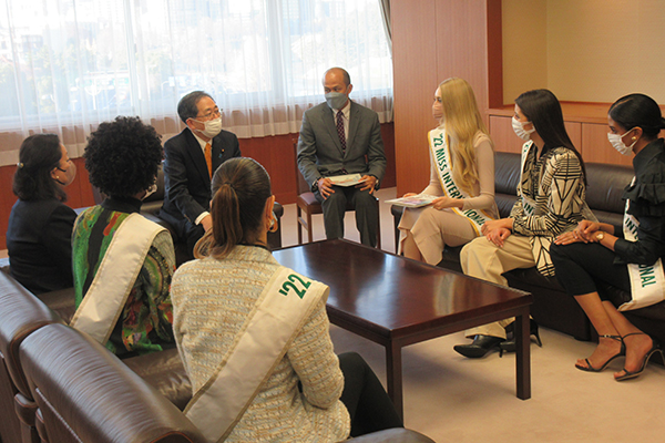 ミス・ビジットジャパン観光特使は、ミス・インターナショナル世界大会の出場者が任命され、日本の伝統文化等を世界に向けて発信しています。表敬訪問では、日本と各国との観光交流の意義・重要性について話し合われました。