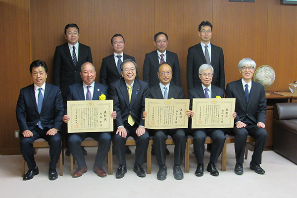 受賞者に表彰状を授与する斉藤大臣