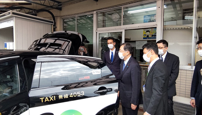EVタクシーを視察する斉藤大臣