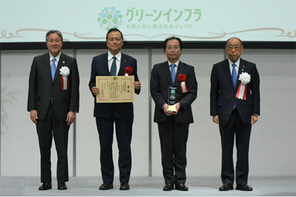 豊田副大臣は、令和5年2月1日(水)、「グリーンインフラ産業展2023(場所:東京ビッグサイト)」での「第3回グリーンインフラ大賞「国土交通大臣賞」表彰式」に出席し、まちづくり等において自然が有する多様な機能を活用した4事例の表彰を行いました。