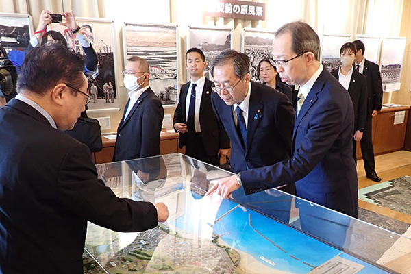 相馬市の震災伝承施設を視察する斉藤大臣