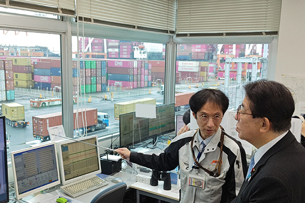 飛島ふ頭南側コンテナターミナルでの視察の様子