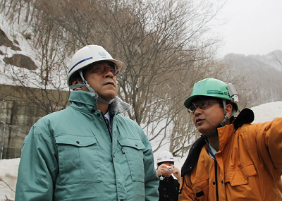 宮城県の国道48号雪崩発生現場を土井大臣政務官が視察