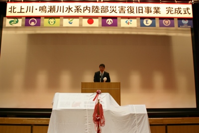 平成26年3月9日(日)、高木副大臣は、大崎市内で開催された「北上川・鳴瀬川水系内陸部災害復旧事業完成式」に出席し挨拶しました。