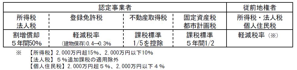 また、上記[1]については、人口減少・高齢化社会が到来する中で、環境負荷の小さい都市機能が集約されたコンパクトなまちづくりを促進する観点から、事業面積要件の緩和等の拡充を行う。