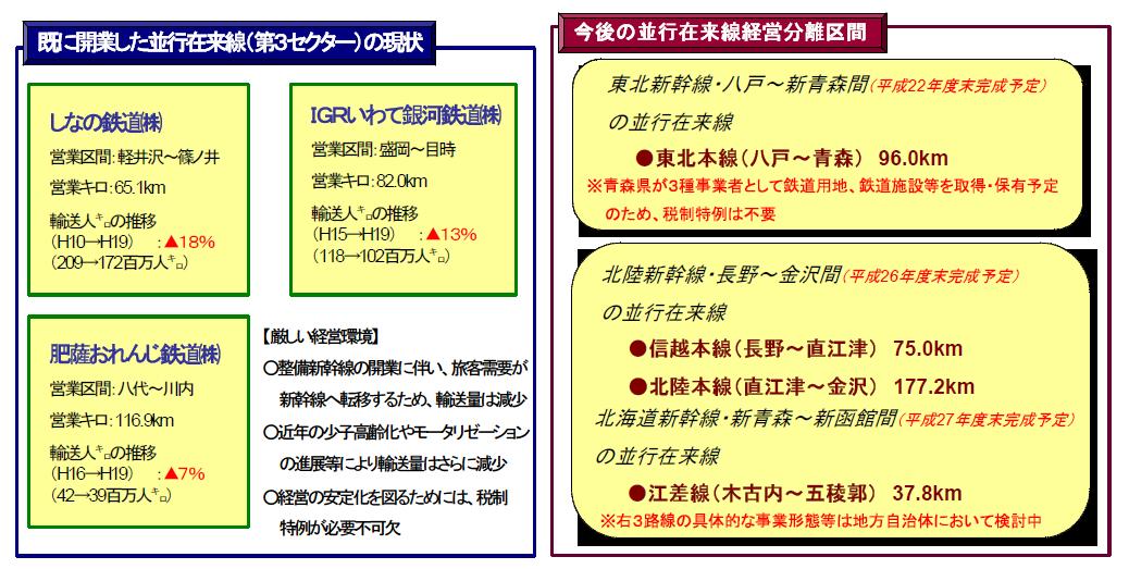 ※ 現在、「政府・与党整備新幹線検討委員会」や「与党整備新幹線建設促進プロジェクトチーム」において、並行在来線の支援措置を検討中であり、右検討結果に基づき、並行在来線の経営基盤の安定化のための所要の税制上の措置を講じるもの。