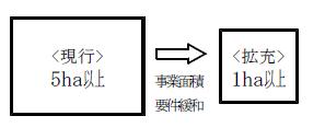 三大都市圏の既成市街地、近郊整備地帯等の区域及び政令指定都市を除く地域においては、事業区域面積の要件を0.5ha以上から0.2ha以上に緩和。