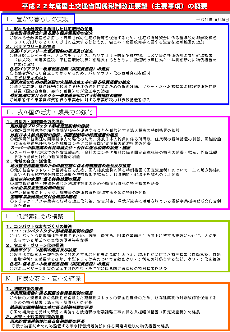 平成22年度国土交通省関係税制改正要望(主要事項)の概要