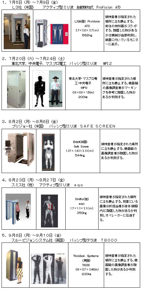 この報告に盛りこまれた、個人のプライバシー保護、具体的な実施方法の考え方等に従いながら、下記のスケジュールにより、成田国際空港におきまして、ボディスキャナーの実証実験を行います。