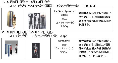 なお、「スルービジョンシステム社(英国) パッシブ型テラ波 T8000」の実証実験につきましては、当初予定どおり9月6日(月)から9月10日(金)、取材日時は、9月6日(月)11:00から12:00に行います。