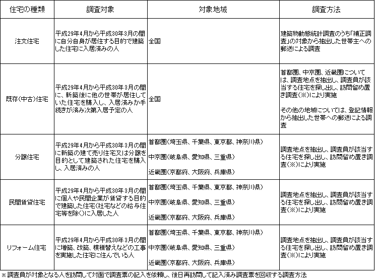 住み替え・建て替え前後の住宅やその住宅に居住する世帯の状況、住宅取得に係る資金調達の状況等を把握し、