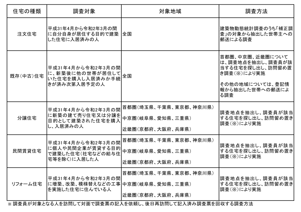 住み替え・建て替え前後の住宅やその住宅に居住する世帯の状況、住宅取得に係る資金調達の状況等を把握し、