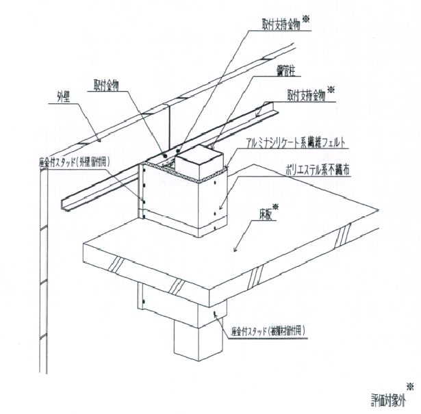 ALCパネル/アルミナシリケート系繊維フェルト合成被覆/鋼管柱 |