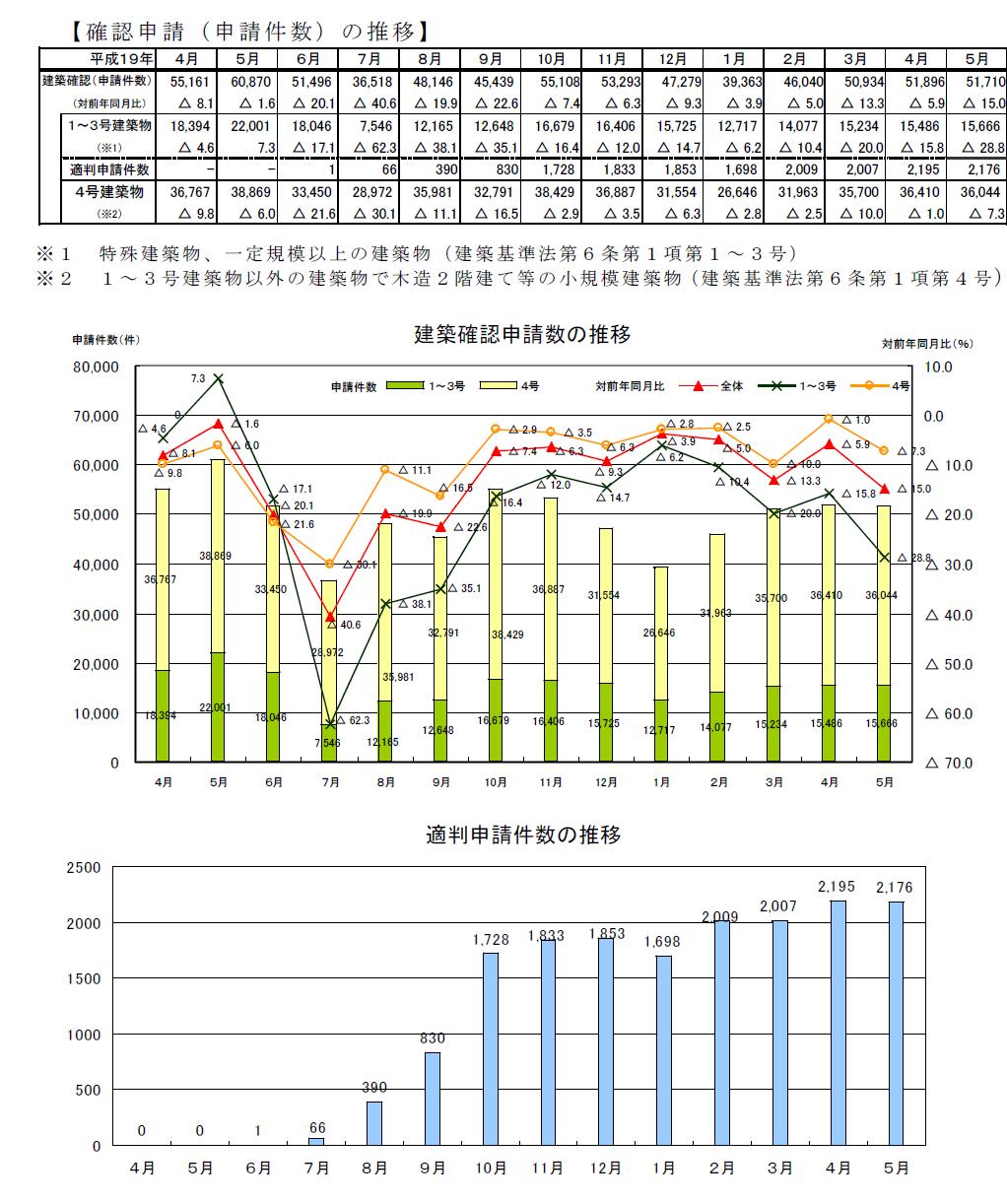 確認件数(計画変更を除く)の推移 【2007年4月~2008年5月】(PDF形式)