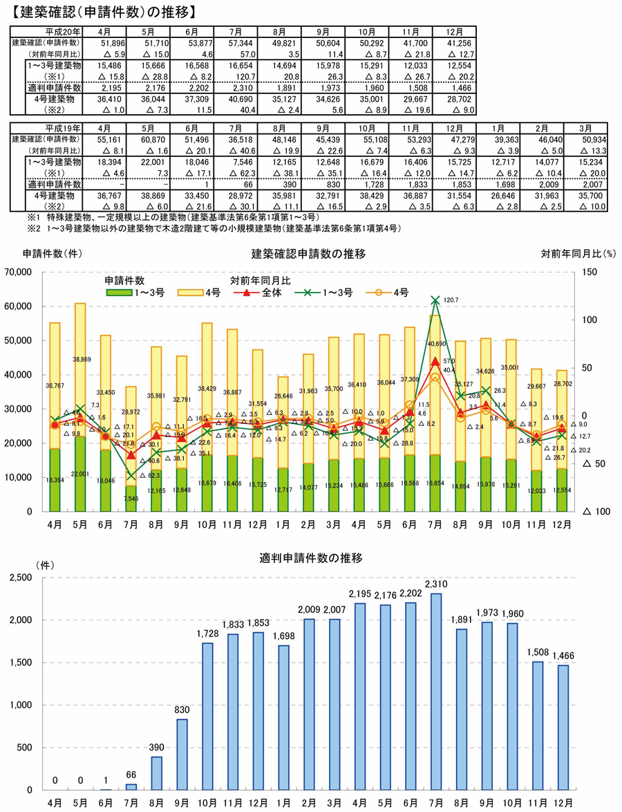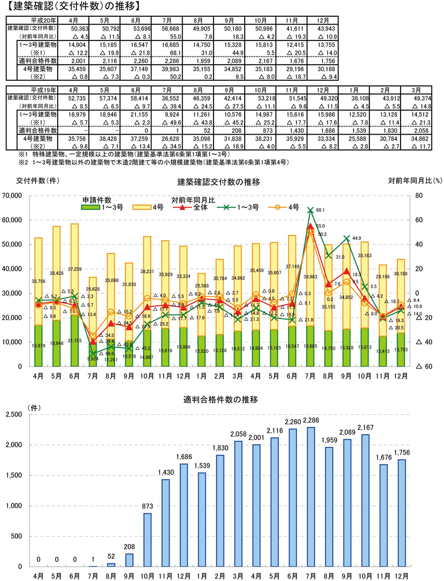 ・12月の建築確認件数は、前月より増加し、対前年同月比は減少。1~3号建築物、4号建築物とも対前年同月比は減少。構造計算適合性判定の合格件数は前月より増加。