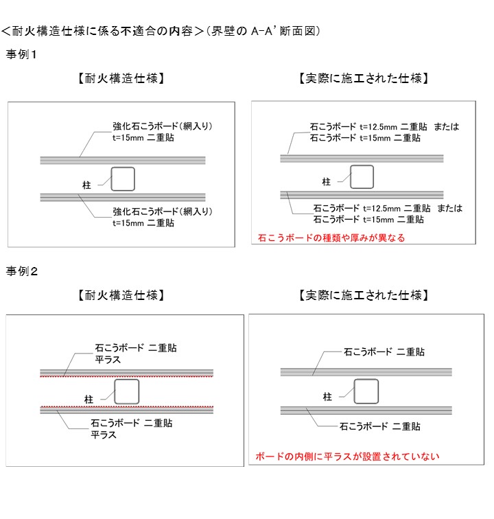 ・ 同社は、今回の不適合に対する是正方法として、耐火構造仕様に適合させるための改修等を行う方針であること。