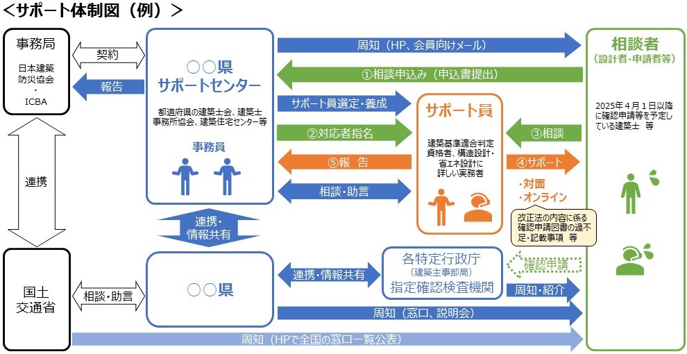 ※を参照してもなお、改正後の建築確認申請等の手続きや申請図書作成等について不明な点がある場合には、建築確認実務に詳しい建築士等のサポート員に対して、個別計画に係る相談ができます。