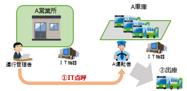 | バス・タクシー事業について、一定の要件を満たす優良な営業所の営業所-車庫間でIT機器を用いた点呼を可能にします。 運転者の営業所-車庫間の往復が不要になる等、ICTの利活用による運行管理の効率化が進み、運転者や運行管理者の働き方改革が促進されることが期待されます。 |