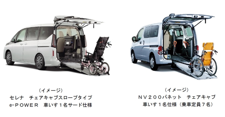 | 国土交通省は、今般、日産自動車株式会社より標準仕様ユニバーサルデザインタクシー認定レベル準1への認定申請があった同社製自動車2車種について認定いたしました。 ・セレナ チェアキャブスロープタイプ e-POWER 車いす1名サード仕様 ・NV200バネット チェアキャブ 車いす1名仕様(乗車定員7名) ※セレナは、助手席側ロングステップ(オプション)装着車が対象となります。 |
