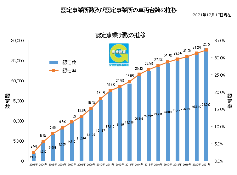 今回の認定により、Gマーク事業所は全国で28,026事業所(全てのトラック事業所の32.1%。対前年度比0.9ポイント増。)となり、更に、安全運行を励行するトラックが増えています。