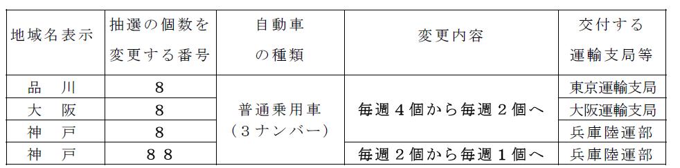ただし、特定運輸支局において特に払出が進んでいる一部の抽選希望ナンバーにつ いては払出個数を2個(小型乗用車及び小型貨車は4個)としています。
