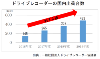 近年、あおり運転や事故の記録・証拠としてドライブレコーダーの記録映像が活用されるなど、ドライブレコーダーの普及が急激に進んでいます。 |