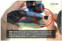 | ○SDカードには寿命があります。事故時に映像を記録できないこともありますので、 各メーカーに問い合わせるとともに、映像を定期的に確認しましょう。 ○ドライブレコーダーは、運転者の視界を妨げないよう保安基準で定められた位置※に取付けましょう。 ※フロントガラス上部から20%以内の範囲など |