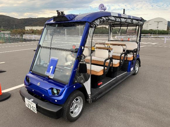 (4)運行車両:ヤマハ製電動カートを産総研が改造し、自動運転機能を追加