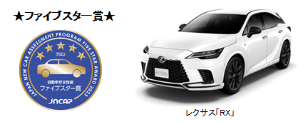 | 国土交通省とナスバ((独)自動車事故対策機構)が自動車の安全性能を評価・公表する「自動 車アセスメント」において、レクサス「RX」が最高評価の「ファイブスター賞」を受賞しました! |